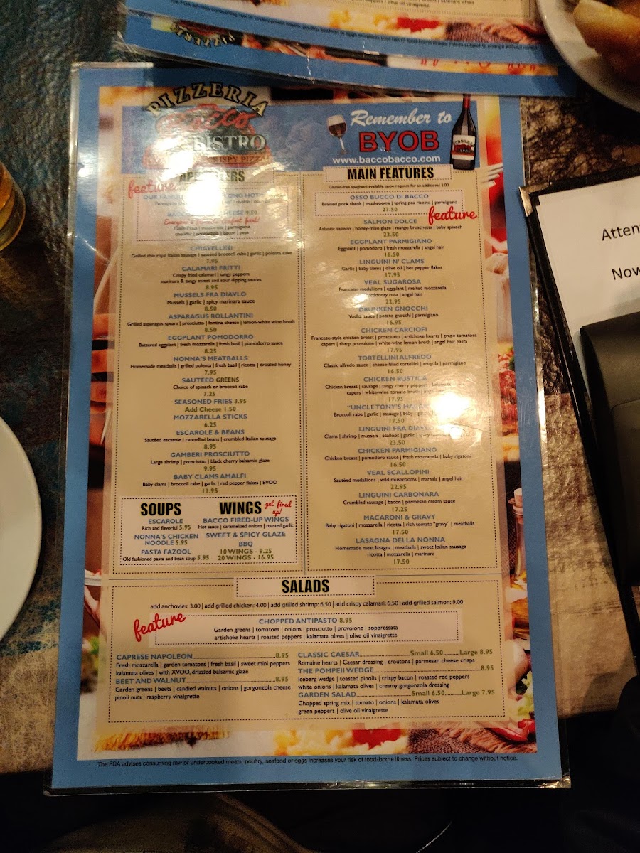 Bacco Bistro Menu